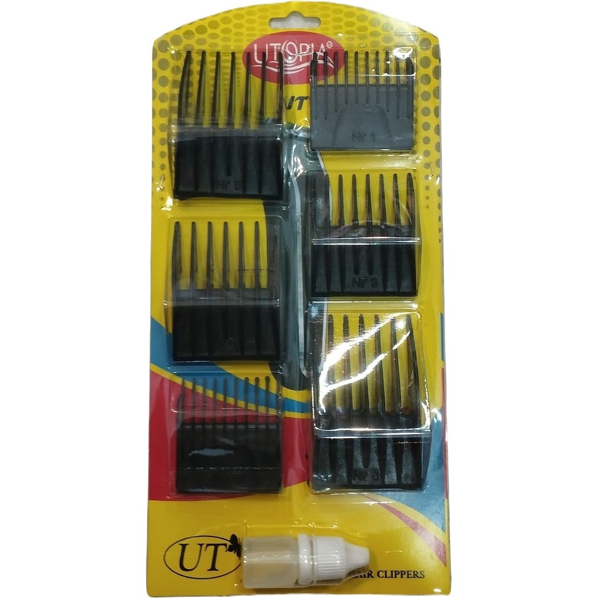 ست شانه ماشین اصلاح ورقی اتوپیا UT (بسته 6 عددی) به همراه روغن ماشین